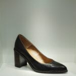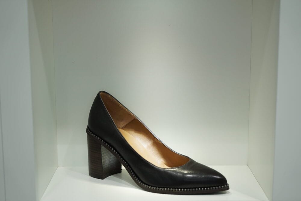 Lederpumps mit 8cm Blockabsatz, Nietenrand und Gummisohle