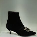 Wildlederstiefelette mit 4cm Kittenabsatz und Spange, Ledersohle